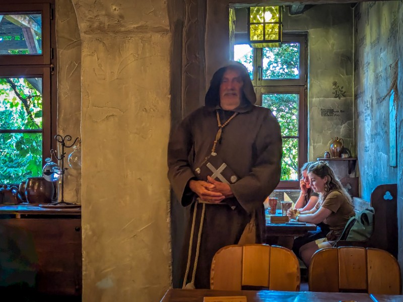 Wij kozen ervoor om binnen te eten waar de kaarsen branden. Er is veel hout en af en toe komt er zelfs een ‘monnik’ langs aan tafel. Het eten is uitstekend en de sfeer past heel goed bij het middeleeuwse karakter van de stad. Een bijzondere plek om de dag in Bautzen af te sluiten.