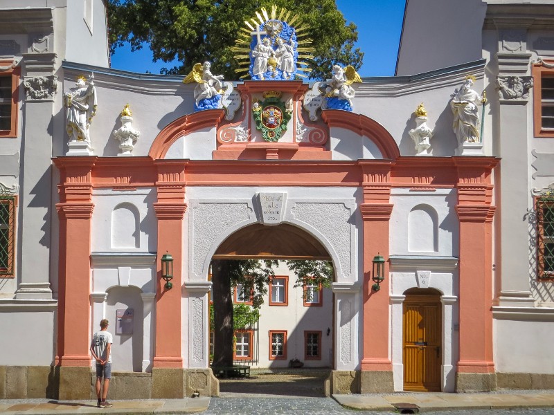 Wanneer je, zoals wij, van de Protschenberg afdaalt en via de Molenbrug (Mlýnský most) de Spree oversteekt, kom je onderaan de ruïnes van de Nicolaikirche terecht. Via een lange trap kom je bij de resten van deze Middeleeuwse kerk.