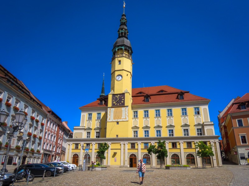 En dan is er natuurlijk nog de toren van het opvallende gele Rathaus aan de Hauptmarkt. Al in 1213 werd er op deze plek een stadhuis gebouwd, al diende het destijds ook of vooral als marktgebouw.
