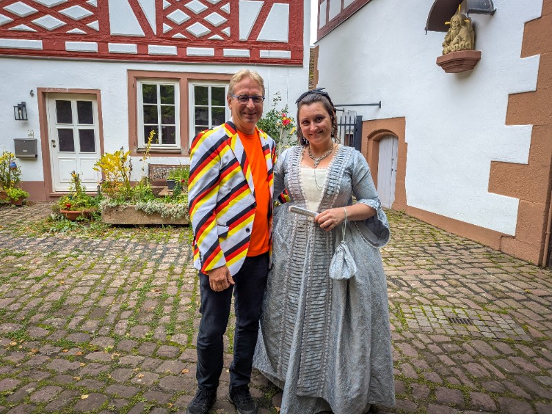 De barones toont ons ook diverse mooie vakwerkhuizen in de Altstadt. Vooral aan en rond de Hauptstrasse, die van West naar Oost loopt.