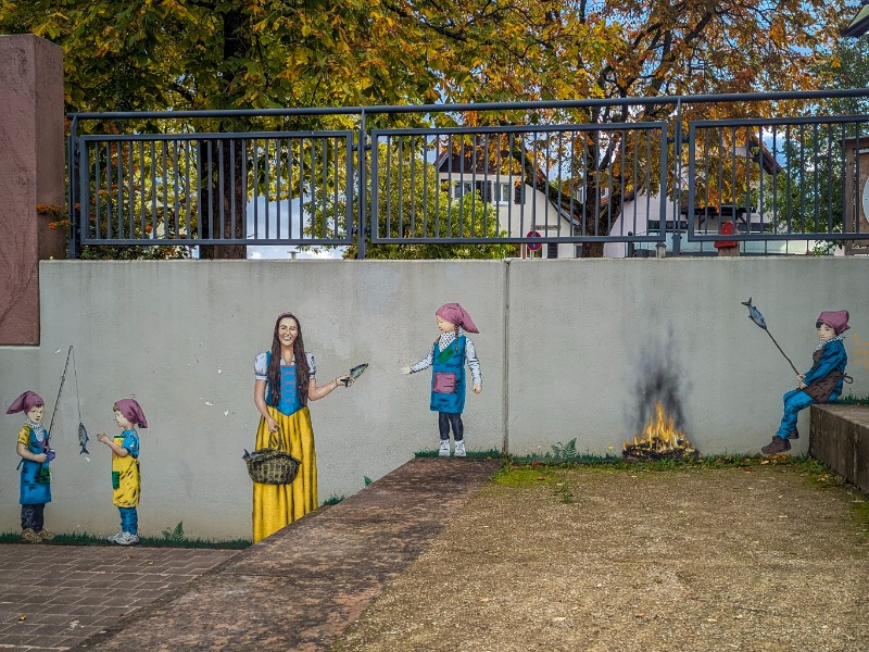 De door Disney geïntroduceerde versie kan je zomaar in levende lijve tegenkomen. En zij is ook te zien op een muurschildering bij het beekje Kaibach net ten zuiden van de Altstadt. Maar dit is zeker niet de enige versie.